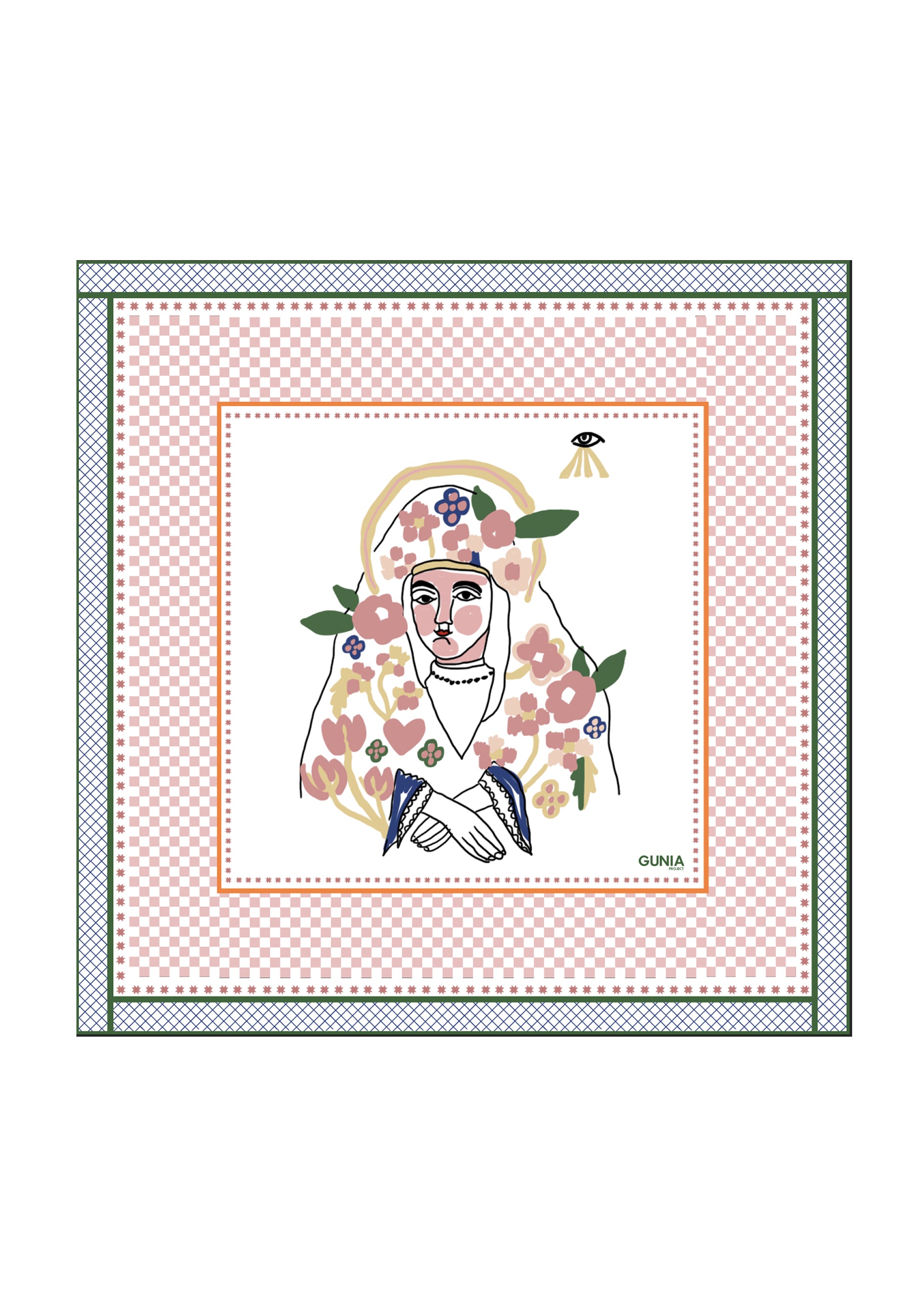 Хустка шовкова силуети з зеленим кантом