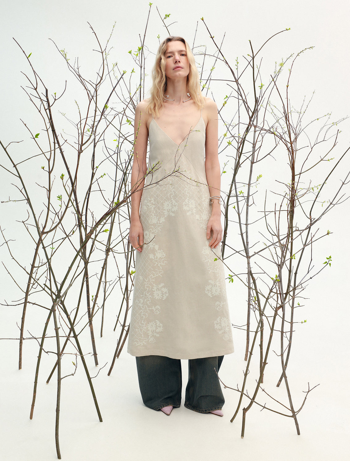 Шовкові штани з принтом Ружа в молочному